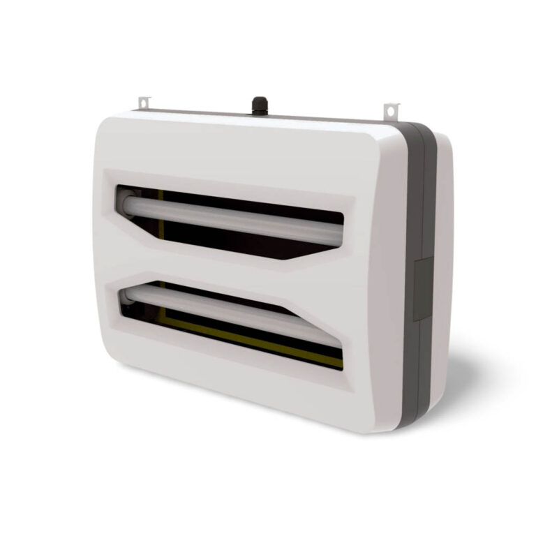 Ηλεκτρική εντομοπαγίδα οροφής, για σχετικά μεγάλους βιομηχανικούς χώρους 180 – 200τ.μ. Φέρει 4 λαμπτήρες 15W UV-A, με προστασία θρυμματισμού. Με πρωτοποριακή τεχνολογία ανακλαστήρων για υψηλή αποτελεσματικότητα.