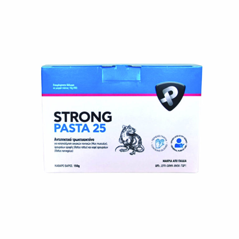 Το STRONG PASTA 25 (brodifacoum 0,0025%) είναι ένα ισχυρό αντιπηκτικό τρωκτικοκτόνο, σε μορφή πάστας.