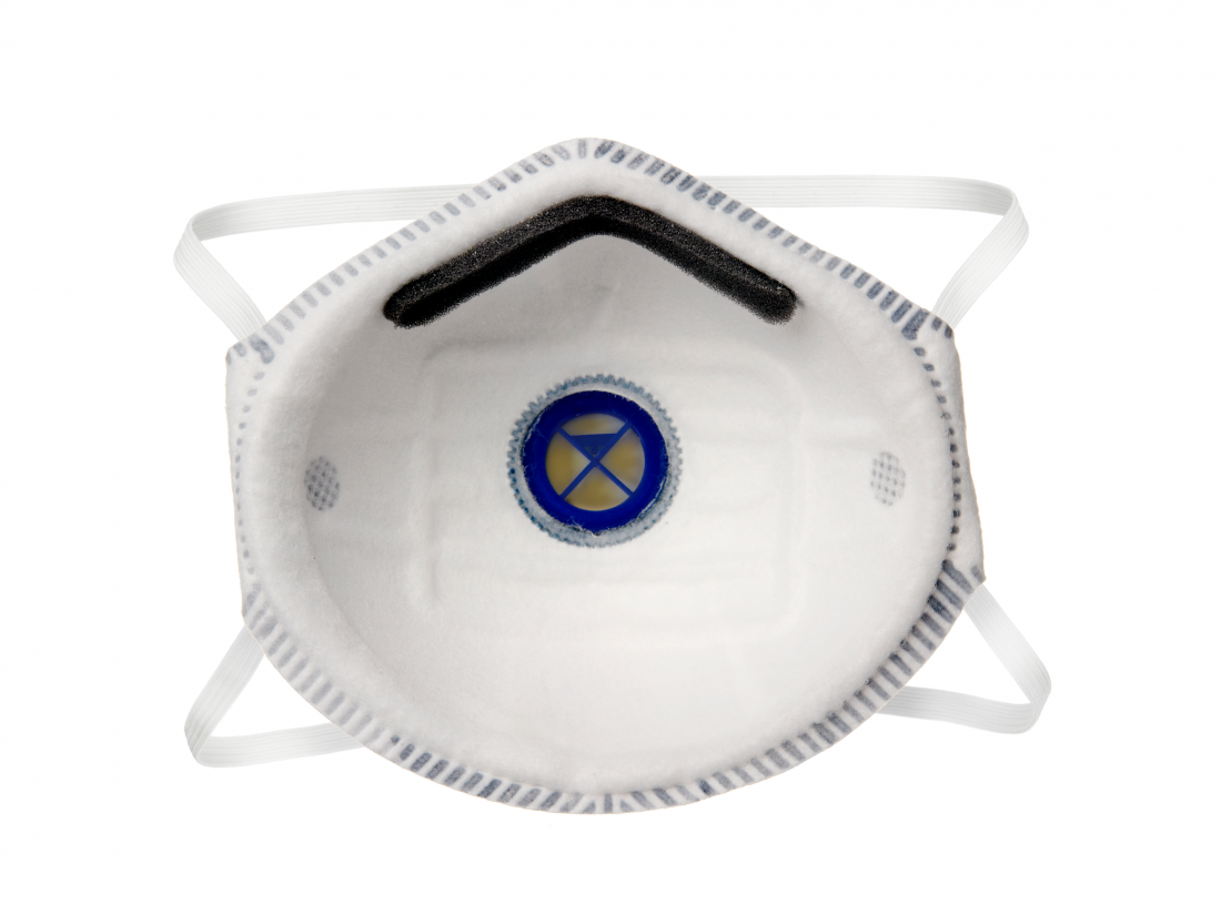 Μάσκα αναπνευστικής προστασίας μιας χρήσης κατηγορίας FFP2 με στρώμα ενεργού άνθρακα και βαλβίδα εκπνοής.