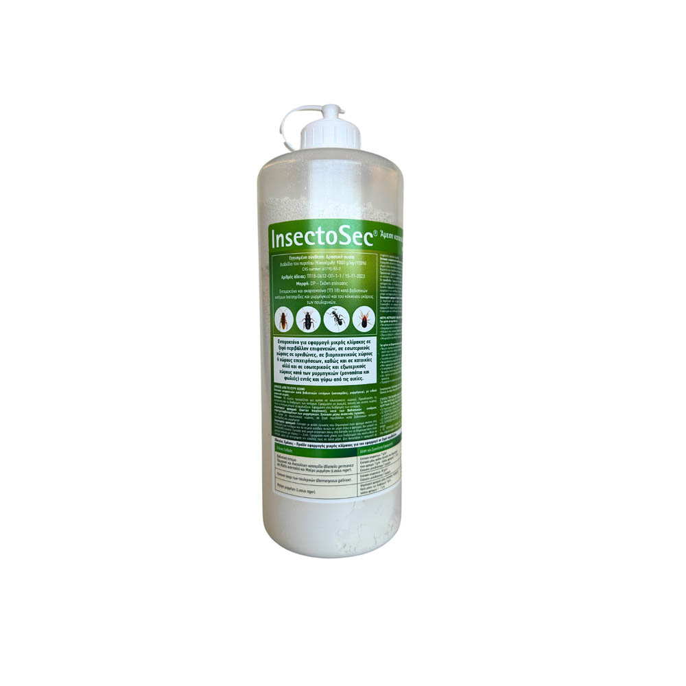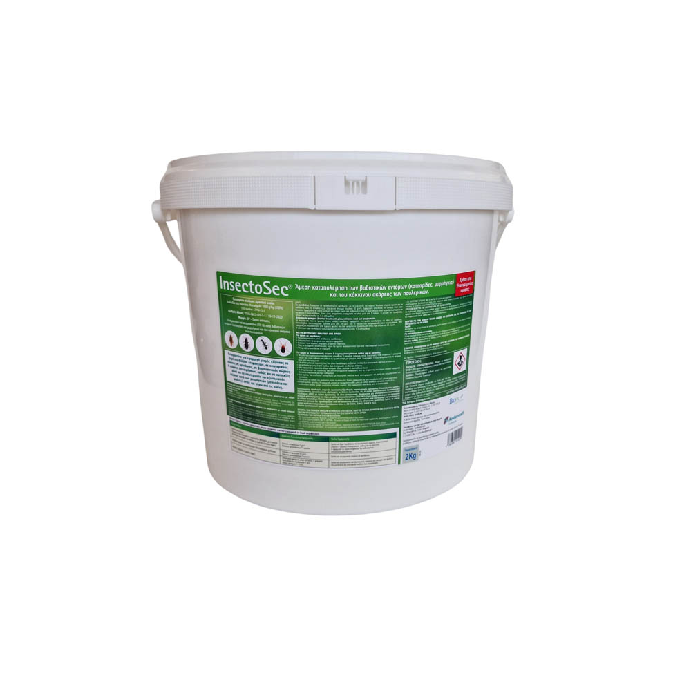 Το INSECTOSEC είναι ετοιμόχρηστο εντομοκτόνο / ακαρεοκτόνο με διοξείδιο του πυριτίου (γη διατόμων) για την καταπολέμηση βαδιστικών εντόμων (π.χ. κατσαρίδες, μυρμήγκια) και του κόκκινου ακάρεος των πουλερικών.