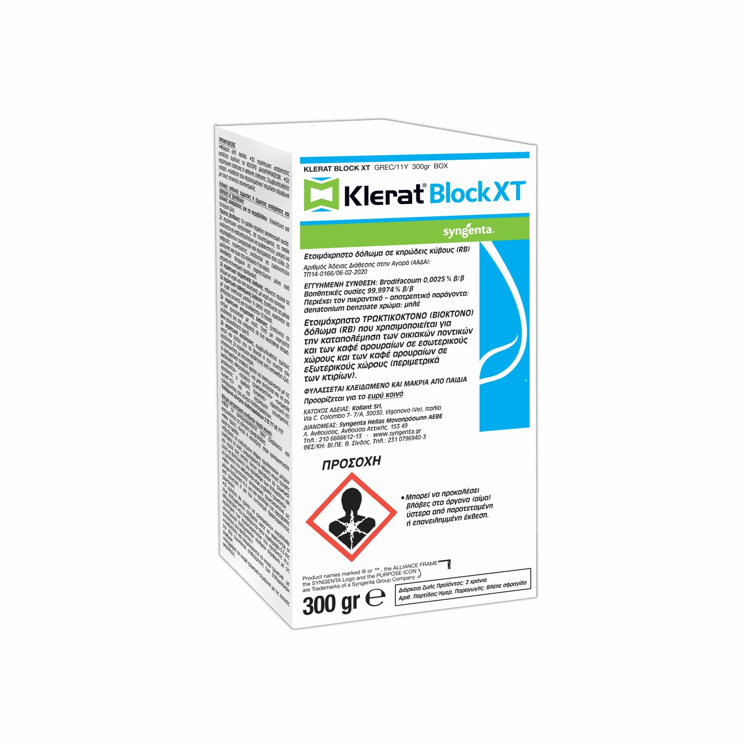 Το KLERAT BLOCK XT (brodifacoum 0,0025%) είναι ένα ισχυρό αντιπηκτικό τρωκτικοκτόνο, σε μορφή κύβου.