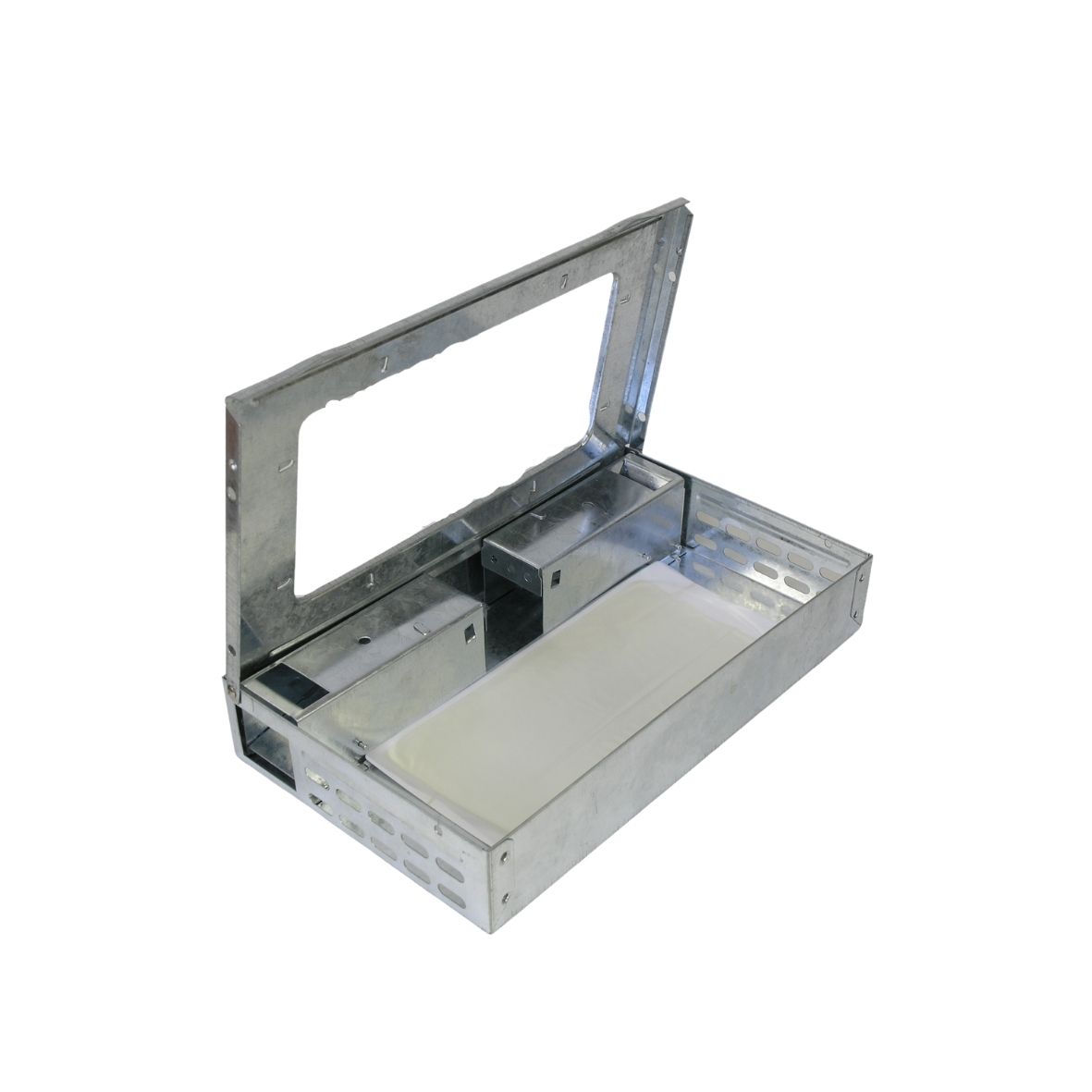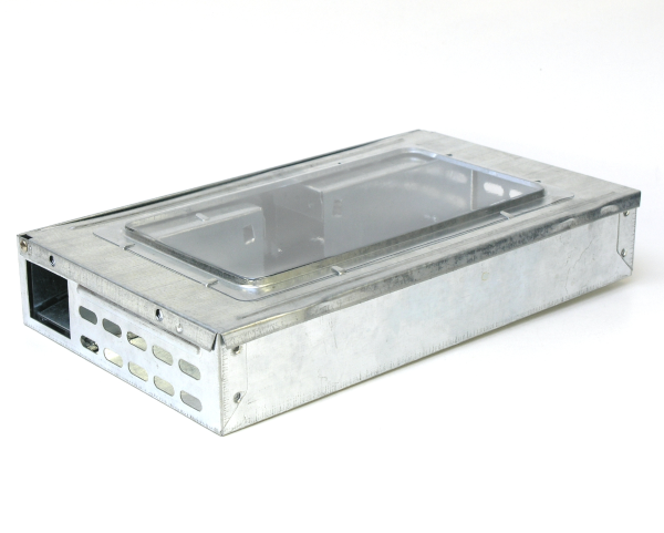 Μεταλλική μηχανική παγίδα πολλαπλών συλλήψεων ποντικών, γαλβανισμένη για αντοχή στη διάβρωση, με διαφανές καπάκι για εύκολο έλεγχο. Κατάλληλη για έλεγχο τρωκτικών. Δέχεται παγίδα κόλλας TRAPPER LTD.