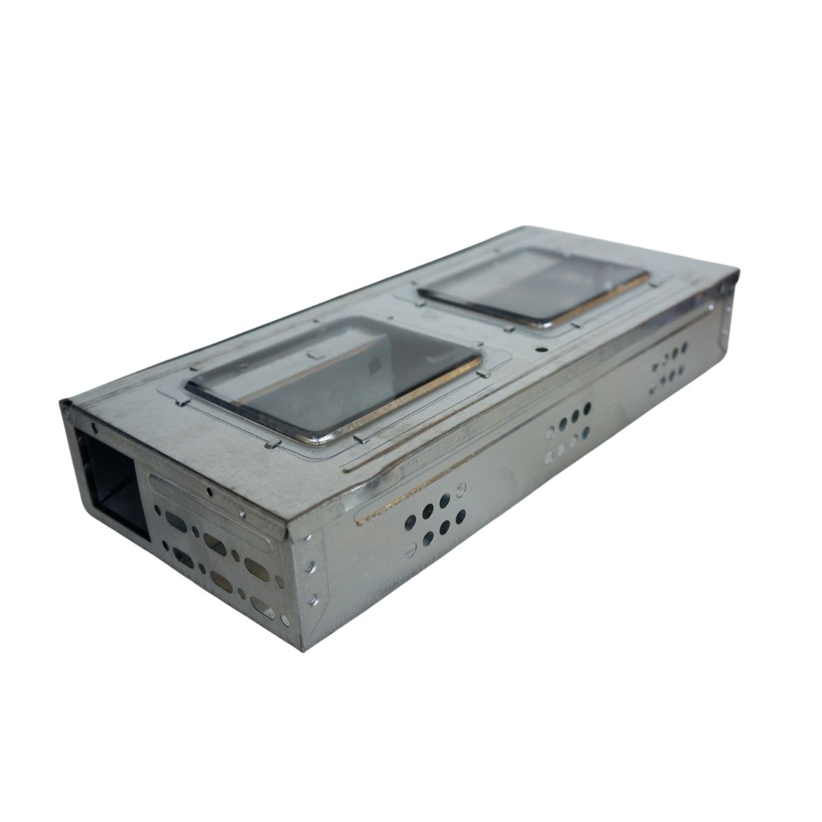 Μεταλλική μηχανική παγίδα πολλαπλών συλλήψεων αρουραίων, γαλβανισμένη για αντοχή στη διάβρωση. Κατάλληλη τόσο για έλεγχο, όσο και για παγίδευση.
