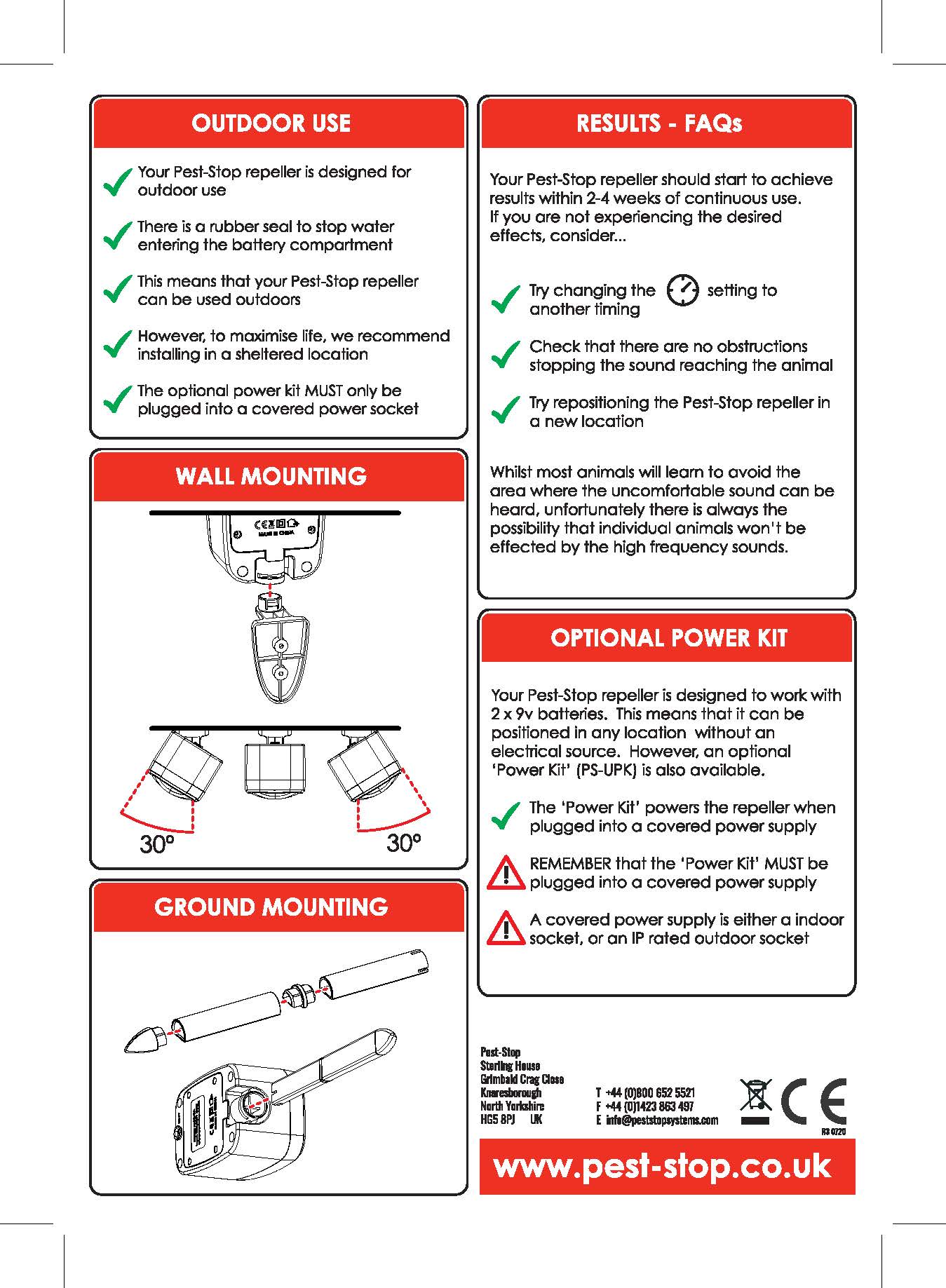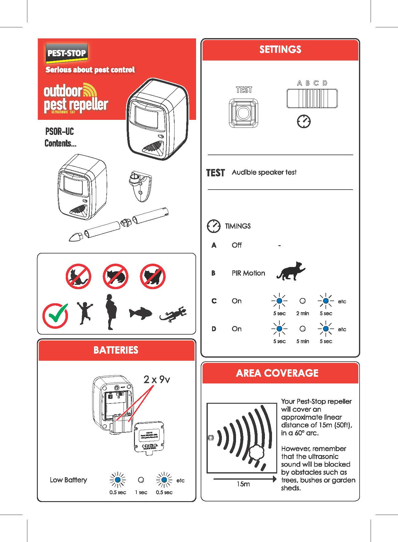 Είναι σχεδιασμένο για εξωτερική χρήση και μπορεί να λειτουργήσει είτε σε κυκλικό πρόγραμμα εκπομπής υπερήχων είτε μέσω ενσωματωμένου υπέρυθρου αισθητήρα ανίχνευσης κίνησης (PIR), ενεργοποιούμενη μόνο όταν ανιχνευθεί κίνηση.