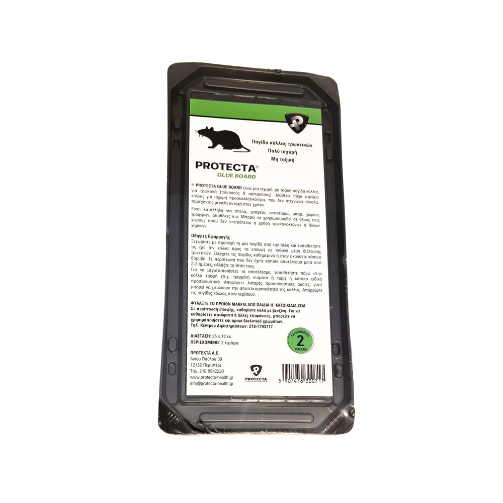Με μεγάλη επιφάνεια παγίδευσης, κατάλληλη για χρήση σε οικιακούς και επαγγελματικούς χώρους. Διαθέτει παχύ στρώμα κόλλας για ισχυρή προσκολλητικότητα, που δεν στεγνώνει εύκολα, παρέχοντας μεγάλη αντοχή στον χρόνο.